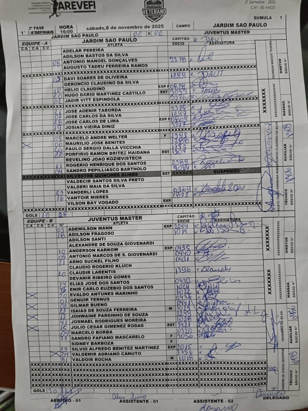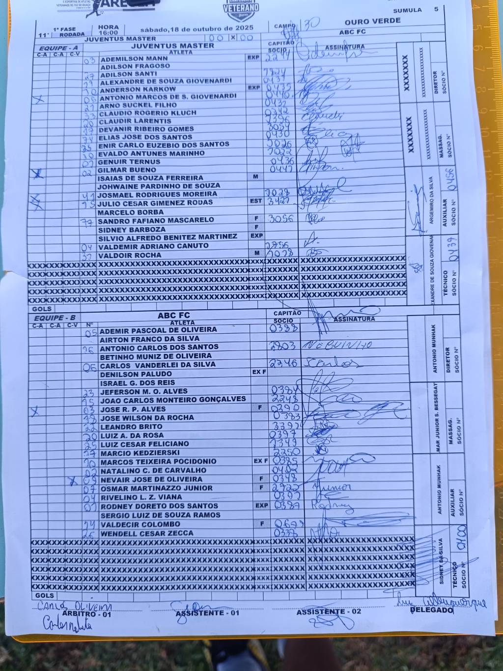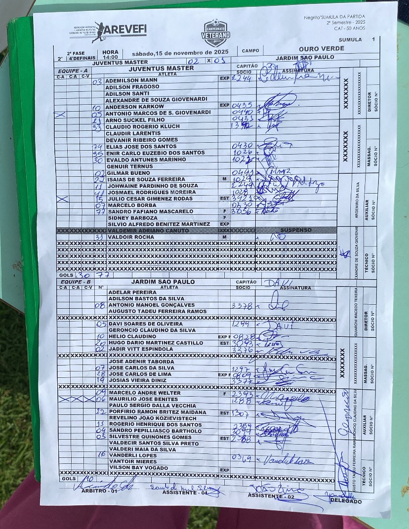 | 14:00 | JUVENTUS MASTER juv (4º) | 0 x 2 0 x 2 | ABC abc (1º) | Ouro VerdeOuro Verde | |